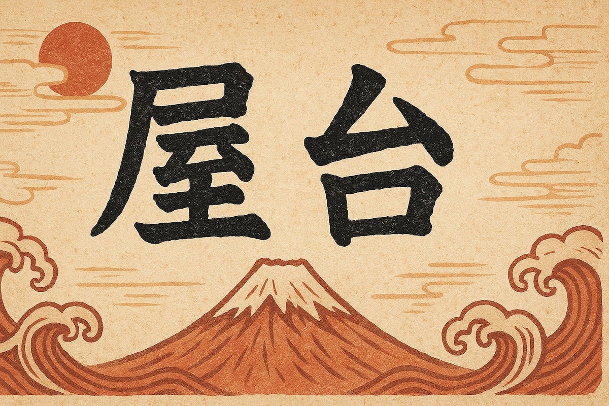 En las escrituras antiguas, el kanji 屋 representaba un edificio con un tejado inclinado y una estructura interior debajo, es decir, un dibujo esquemático de una casa o estructura cubierta. Con el tiempo, la forma se estilizó hasta convertirse en el kanji moderno, pero los elementos siguen siendo visibles.